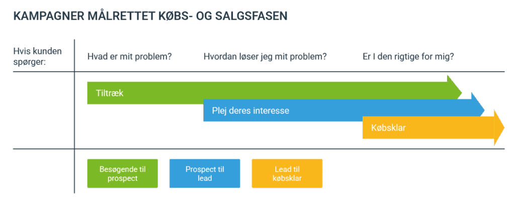 Når marketing har et fuldt overblik på et leads typiske købsfaser og hvilke faser salg har for at understøtte disse, kan marketing afdelingen begynde at tilrettelægge kampagner der er tilpasset de rette faser.